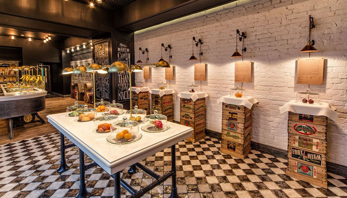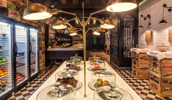 設(shè)計理念:復(fù)古的設(shè)計風(fēng)格希望能為以健康生活方式為理念的擁護(hù)者,打造一個放松舒適俱樂部的氛圍,提供客人新鮮的水果、果汁、沙拉、果醬或是葡萄酒,也希望讓客人了解以水果為主的飲食習(xí)慣的優(yōu)點。