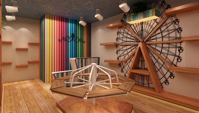 設計理念:設計師在室內(nèi)設計的時候,加入了童話的元素,感覺進入到童話的世界一般,引起人們對童心,不管是小孩還是大人都有自己的童心所在,設計師希望可以借此增加店鋪的魅力。