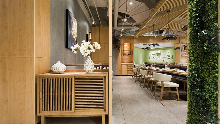 小吃店店面裝修設(shè)計(jì):綠色是空間給人的第一感覺(jué),素雅是空間給人的第二感覺(jué),設(shè)計(jì)師就是要改變?nèi)藗?,?duì)傳統(tǒng)小吃臟亂差的固定形象,在這里傳統(tǒng)小吃被賦予了新的生命力。