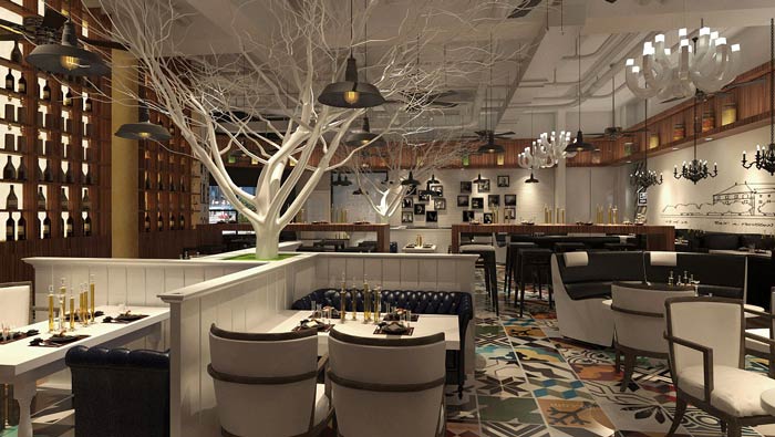 本次為休閑西餐廳裝修設(shè)計方案,西餐廳位于商場之內(nèi),設(shè)計師根據(jù)地點、客戶屬性對西餐廳做出了如下定位:就餐、休息、聊天三大關(guān)鍵詞,就餐是滿足餐廳的基本需求,休息是當客戶在逛商場的時候,可以進來休息一下,以此變相的促進消費,聊天是為餐廳增加了咖啡廳式的屬性。