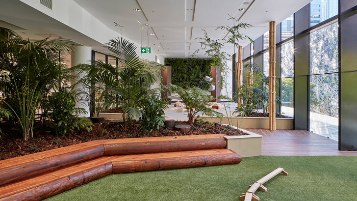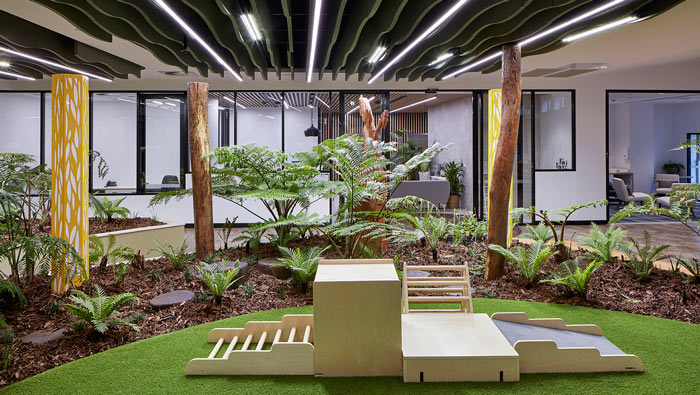 早教中心綠植設(shè)計(jì):現(xiàn)在的小朋友已經(jīng)鮮少能夠見到泥土地了,設(shè)計(jì)師希望通過(guò)綠植室內(nèi)的栽植,讓孩子回歸自然、回歸先天,讓孩子在這樣的空間中感受到自然的魅力。