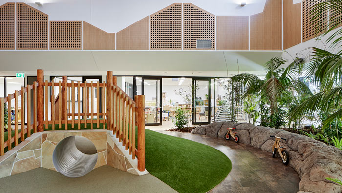 早教中心自然區(qū)設(shè)計(jì):這里還原了很多自然屬性,孩子對(duì)于世界的認(rèn)識(shí)是初步的,設(shè)計(jì)師希望讓孩子在這里逐步去了解自然,讓孩子通過(guò)自己不斷的發(fā)現(xiàn),激發(fā)孩子的想象力。