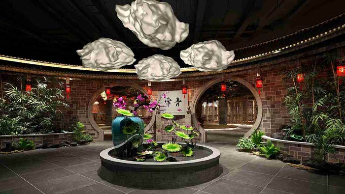 中餐廳過道設(shè)計(jì):過道是連接室內(nèi)與室外的重要通道,當(dāng)客戶經(jīng)過這里的時(shí)候,仿佛進(jìn)入了古代社會(huì),這里花草樹木與空間融為一體,讓客戶更加親近自然,讓客戶愛上這里。