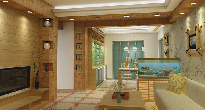 基調(diào)是豐收的金黃色,盡可能選用木、石、藤、竹、織物等天然材料裝飾。軟裝飾上常有藤制品,有綠色盆栽、瓷器、陶器等擺設(shè)。