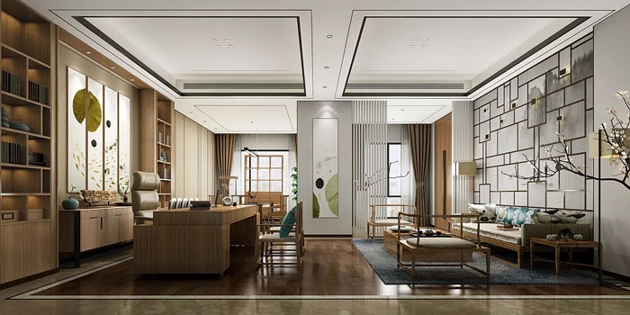 3:新中式同時打破了,傳統(tǒng)中式空間布局中等級、尊卑等文化思想,空間配色上也更為輕松自然。