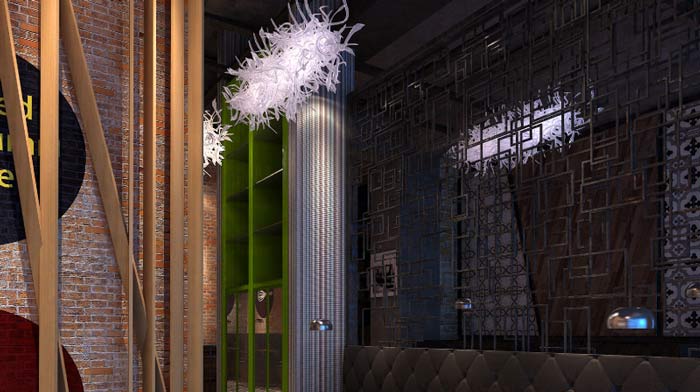 設計理念:設計師在茉莉餐廳裝修設計的時候,裝修風格比較獨特,與一般的餐廳的暖色調(diào)為主不同,它以鮮明幽雅的紅、黑、褐為主色調(diào);大量的使用水晶、燈光、鏡面效果及時尚的圓形水滴包房,溫馨的就餐環(huán)境。