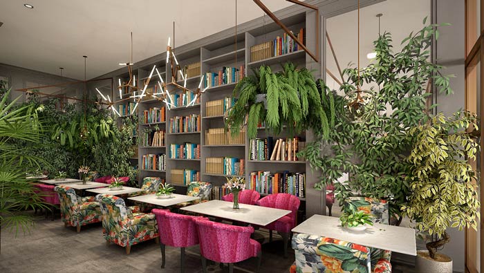主題餐廳就餐區(qū)設(shè)計(jì):此處位于空間的內(nèi)部區(qū)域,外部以熱帶雨林風(fēng)格為主,內(nèi)部為幽靜、清雅的風(fēng)格為主,一靜一動(dòng)之間讓整個(gè)空間更有魅力,滿足不同需求的客戶。