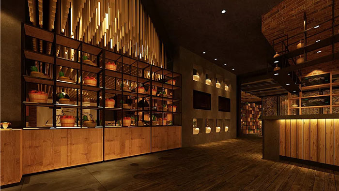 主題餐廳外立面設計:磚墻的裝修展現(xiàn)了對過去的尊重,也給客人以時代的回憶,木材的自然氣息,營造了優(yōu)雅、寧靜的氛圍,柔和的燈光為客人提供一個溫馨的用餐空間。