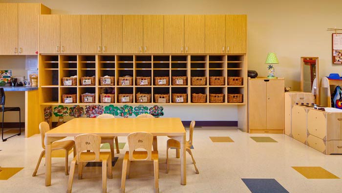 休息區(qū)域的設計:此處與教室的格局類似,但功能卻不同,此處是孩子的個人時間,在設計師看來每一個孩子都需要有自己的時間,讓孩子們自己去安排,我們不能扼殺孩子的天性,因為有時候我們做的一切不一定對孩子有好處,所有需要這樣一個空間,讓孩子獨立自主的完成某項事物,只有如此才能讓孩子不斷成長。