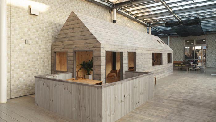 室內(nèi)整體的設(shè)計:一眼望去簡單且富有規(guī)律,這也是設(shè)計師不斷優(yōu)化下的作品,此處主要是根據(jù)孩子的興趣創(chuàng)造的,在設(shè)計師看來孩子最喜歡的就是模仿大人,故此設(shè)計師以現(xiàn)實生活為模型,為孩子們創(chuàng)造了一個與現(xiàn)實生活接軌的空間,在這里孩子們可以學(xué)會來自生活的各種技能。