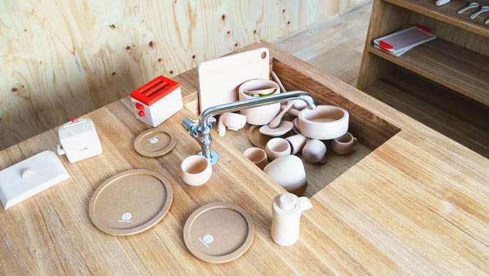 洗手池的設(shè)計:通過這里可以看出設(shè)計師對于孩子安全的關(guān)心,木質(zhì)材料做成的桌子、餐具、勺子,保證了孩子的安全,同時十分衛(wèi)生,讓孩子們在這樣可以快樂、健康的成長,讓孩子在不斷在實踐中成長自身,從小培養(yǎng)孩子實踐的習(xí)慣,這會讓孩子一生都受益終生。